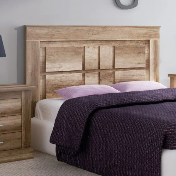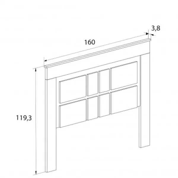 Cabecero de madera con patas del modelo Chellén. Original dibujo con relieves cuadrados en el plafón. Mueble KIT.