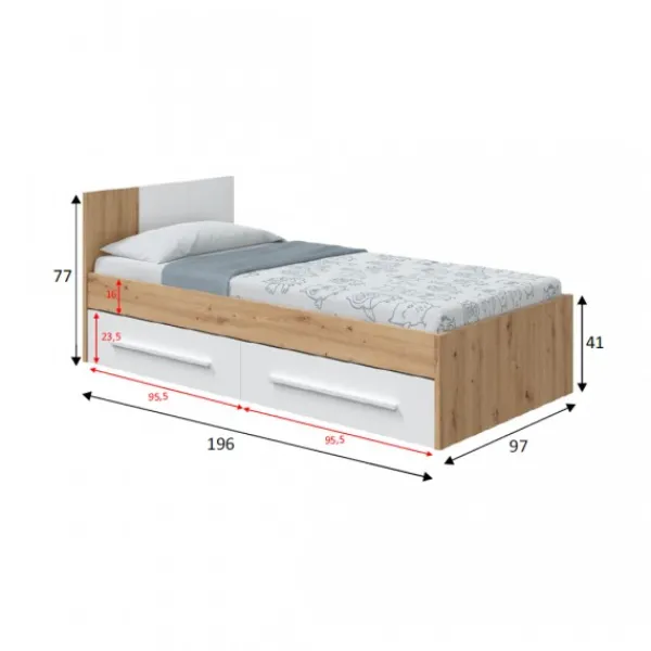 Cama con cabezal para colchón de 190×90 y con 2 cajones en la parte inferior del mueble que lo puedes utilizar de almacenaje extra. ENVÍO GRATIS