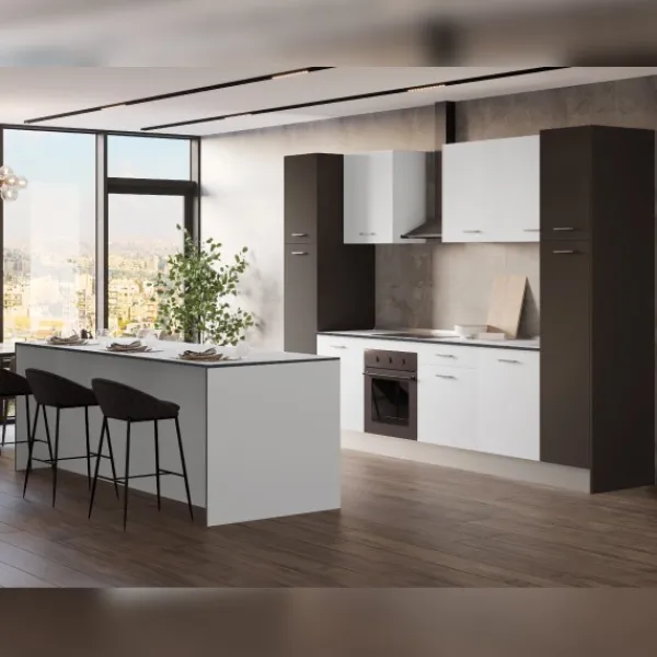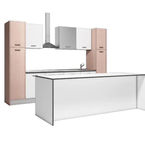 La cocina Export N4 con isla es una cocina de 320cm lineal, sencilla y muy completa. Destaca por sus módulos y su gran capacidad de almacenaje. Y por supuesto por su pieza estrella, la isla. Un espacio cómo para trabajar, cocinas y comer. Un modelo funcional, elegante, económico y práctico. También puede encontrar este modelo sin isla en la web.