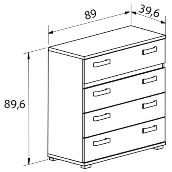 Cómoda de cuatro cajones, fabricada en melamina de alta calidad y disponible en color cambria-grafito. Combinable con el resto de productos de la serie Priego, que encontrará en nuestra web. Elementos decorativos no incluidos. Se presenta en formato KIT.