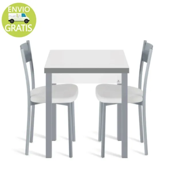 Un conjunto completo, perfecto para completar tu cocina. Incluye la mesa de cocina extensible libro modelo galante y dos sillas vainilla. Disponible en 4 colores diferentes. Puede encontrar este modelo de 80cm en la web. ENVÍO GRATIS