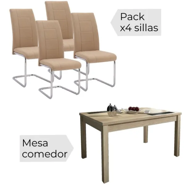 Precioso conjunto de mesa Lara y sillas San. Un estilo moderno en colores neutros que combina con gran variedad de salones. Consigue por fin el confort y la elegancia que buscabas.