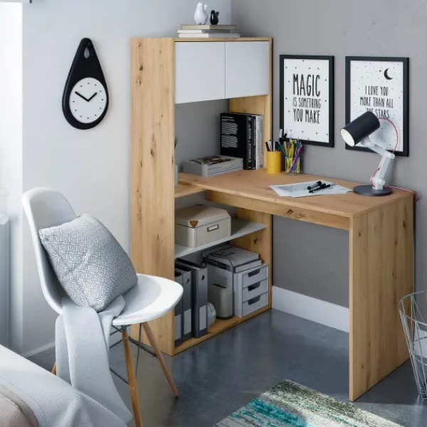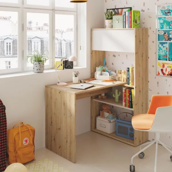 Práctica, versátil y bonita, así es la mesa de estudio Duo. Un completo dos en uno, mesa de estudio con estantes y dos puertas. Reversible, se puede montar de dos maneras diferentes. Muebles KIT. ENVÍO GRATIS