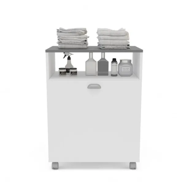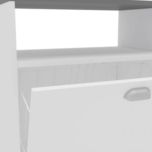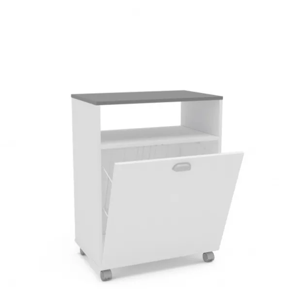 Práctico mueble auxiliar ideal para colocar en baño o lavadero. Te permitirá un almacenaje extra para productos, y ropa pendiente de planchar, a la vez que dispone de una cesta para la ropa sucia. Disponible en dos colores en nuestra web, en color gris se llama Bakery2. ENVÍO GRATIS