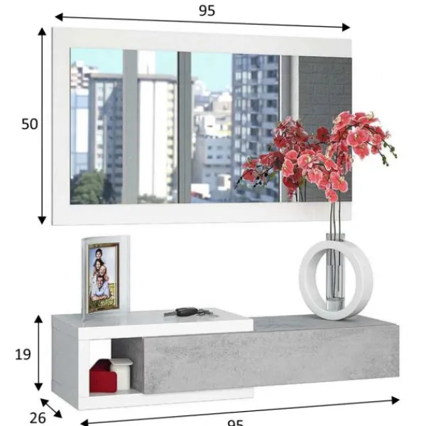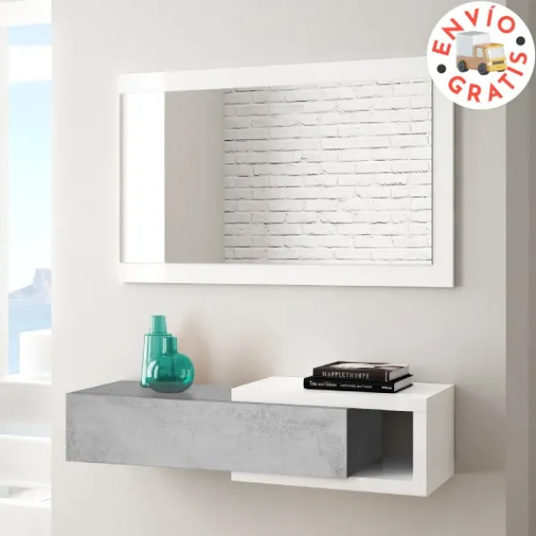 Preciosa entrada compuesta por espejo y recibidor con cajón. Es de color blanco artik-cemento. Las bienvenidas a casa pueden ser super top con recibidores tan chulos como este. Tipo KIT. Envío gratuito.
