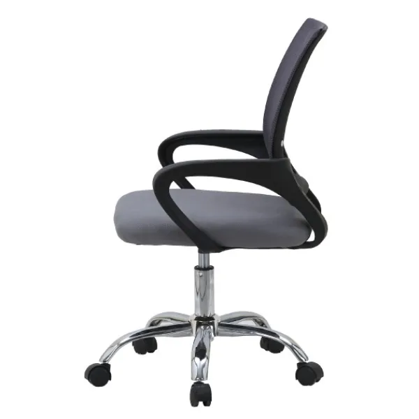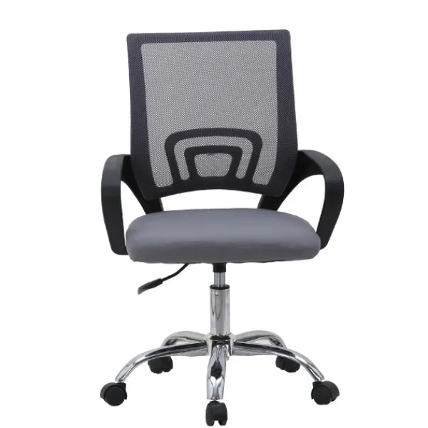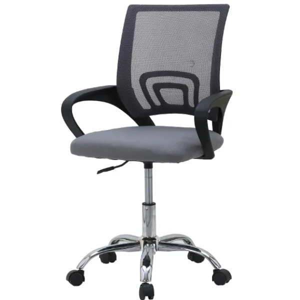 Diseñada para ofrecer confort y estilo, esta silla de oficina con altura regulable cuenta con asiento tapizado en tela resistente y respaldo de malla transpirable, ideal para largas jornadas de trabajo. Su base y patas cromadas aportan estabilidad y un acabado elegante, mientras que los colores disponibles —negro y gris-negro— se adaptan a cualquier despacho u oficina en casa.