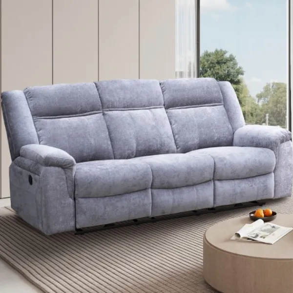 El sofá Troya de tres plazas con dos asientos eléctricos combina confort y funcionalidad. Gracias a su sistema reclinable y muelles ensacados, ofrece una sentada cómoda y resistente. Ideal para salones modernos, está disponible en dos colores: beig y gris. También puedes encontrarlo en formato de 1 y 2 plazas en nuestra web. Una opción práctica con una excelente relación calidad-precio.