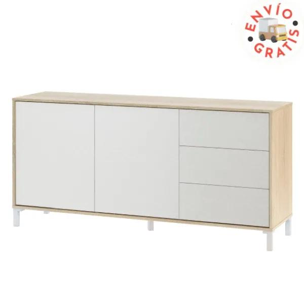 Precioso aparador de dos puertas y tres cajones. Pertenece a la serie Urban Plus, una colección hecha con mimo y cuidado hasta en el último detalle. Combina los colores roble canadian y blanco. Puedes completar este aparador con el resto de artículos de la serie. Puedes encontrar este mismo modelo pero de color roble-óxido en nuestra web. Tipo KIT.