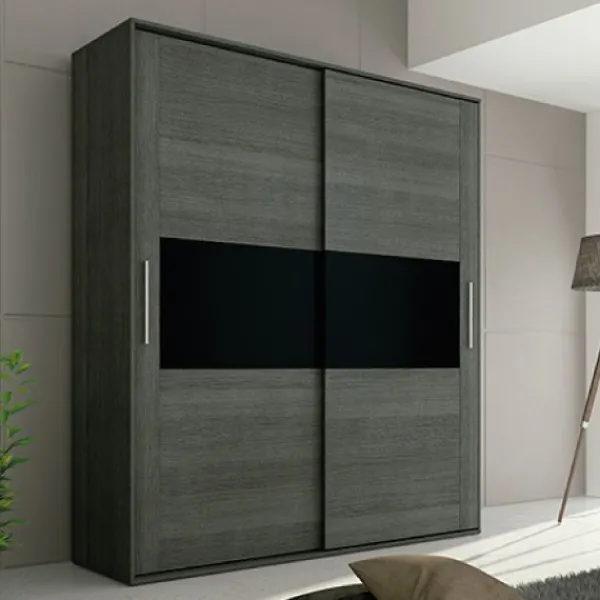 Armario de color ceniza-negro, combinable con el dormitorio de la misma serie y con otros disponibles en nuestra página web. Fabricado en tablero melamínico de alta calidad y con herrajes metálicos lo que hace de este armario un producto de calidad y con gran capacidad de almacenamiento gracias a sus dimensiones. Dispone de dos barras para colgar, y dos estantes interiores que hacen las veces de altillo. Puede aumentarse su capacidad con cajoneras interiores como la que aparece en una de las imágenes (no está incluída). Producto que se sirve en formato KIT, para facilitar el transporte por servicio urgente.