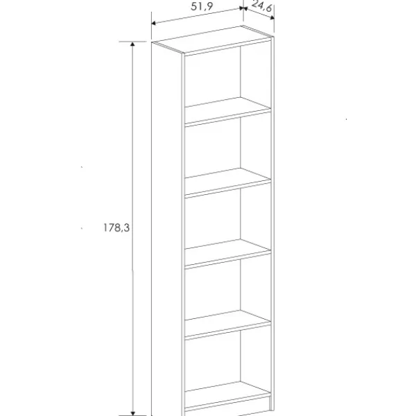 Estantería 5 baldas aura. Disponible con 4 baldas también. Puede combinarla con la serie del modelo Aura en nuestra web. Disponible en dos colores. Mueble KIT.