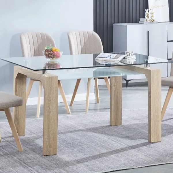 Moderna, práctica y original la mesa de comedor fija modelo Sensei es perfecta para cualquier ambiente, por su resistencia y su facilidad para combinar con todo tipo de muebles. La tapa de la mesa está fabricada en cristal templado transparente, el bajo bandeja es un cristal arenado y las patas son de DM forrado para conseguir el color cambria. Se puede combinar con cualquiera de las sillas de polipiel o tela que puede encontrar en Muebles 1 Click.