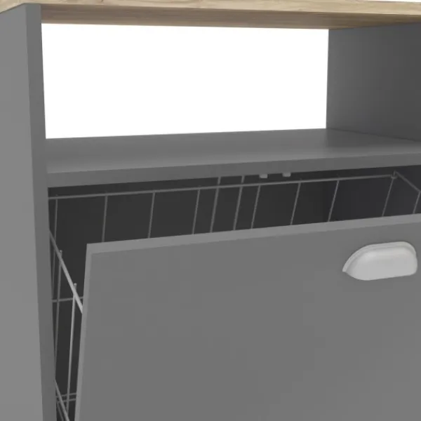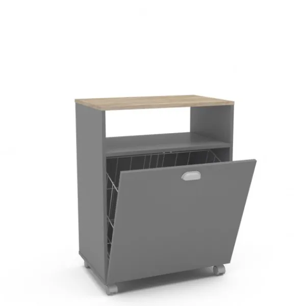 Práctico mueble auxiliar ideal para colocar en baño o lavadero. Te permitirá un almacenaje extra para productos, y ropa pendiente de planchar, a la vez que dispone de una cesta para la ropa sucia. Disponible en dos colores en nuestra web, en color blanco se llama Asfeld2. ENVÍO GRATIS