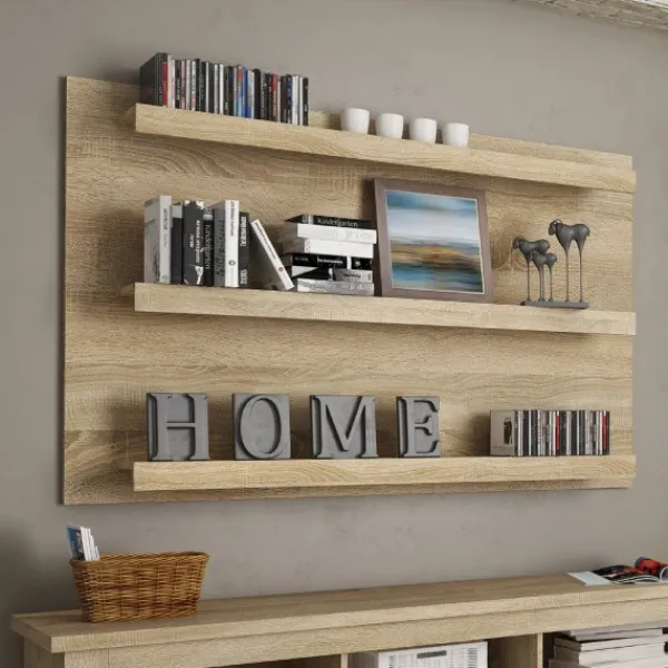 Respaldo con tres estantes, para colgar en pared. Ideal para combinar con el resto de muebles de la serie para componer la composición de salón que buscas. Se puede montar sin estantes, si lo prefiere como respaldo decorativo para la televisión (no dispone de herrajes para anclar la televisión). Fabricado en melamina. Terminado en un original color Cambria, que no pasará desapercibido.
