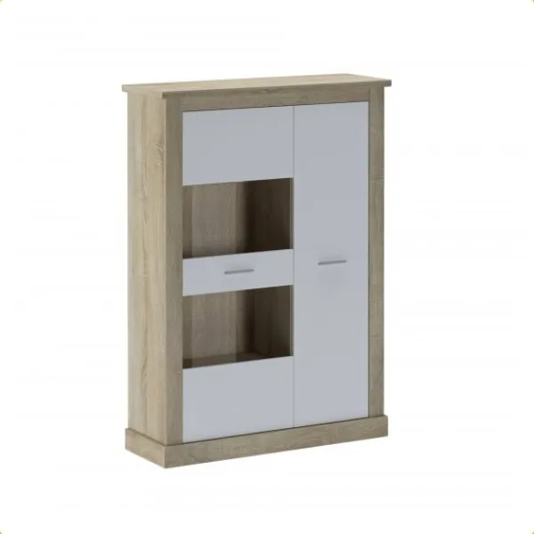 Vitrina baja con dos puertas donde se combina el cristal y partes opacas. Su llamativo color cambria-blanco no pasará desapercibido. Producto perfecto para combinar con el los muebles del resto de la serie para componer la composición ideal que busca. Se sirve en KIT.
