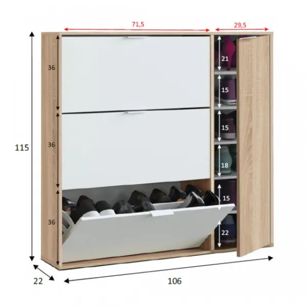 Zapatero de cuatro portones abatibles ideal para aumentar la capacidad de guardado de los dormitorios. Mueble KIT.